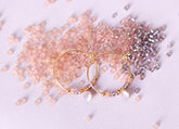 Mini orecchini a cerchio fatti a mano in Francia, con perline di vetro e il delicato tocco di pelle di agnello tipico di Fosseth. Dorati con oro 24 carati, sono perfetti per un look raffinato e originale. Diametro: 1,5 cm.